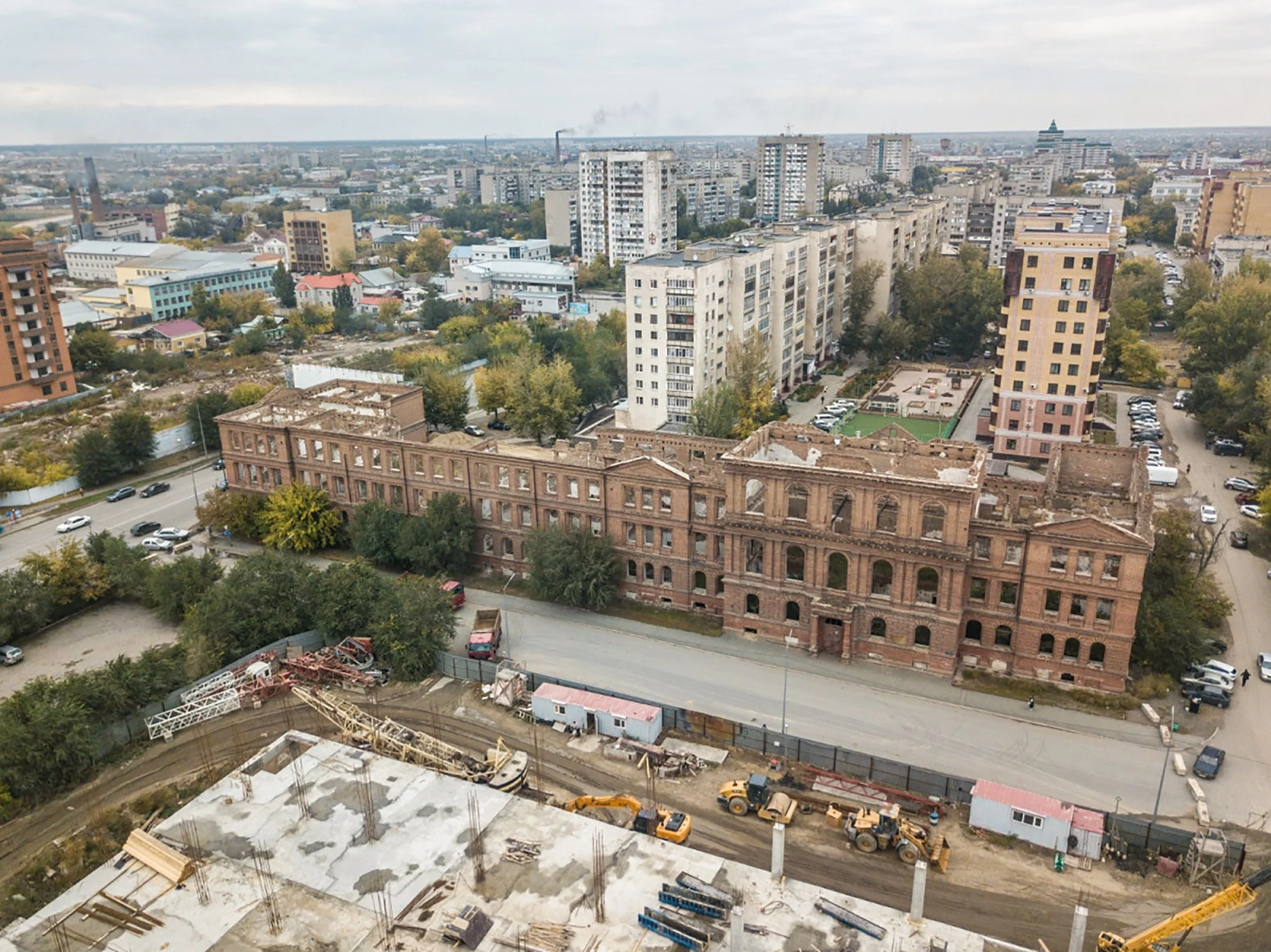 In December 1986, a major fire destroyed the interiors, leaving only the external brick walls. Since then, the building has remained a ruin: floors and staircases are gone, windows stand empty, and façades are cracked. Despite its status as an architectural monument, no restoration had been undertaken, and the structure continued to deteriorate, fenced off and inaccessible.