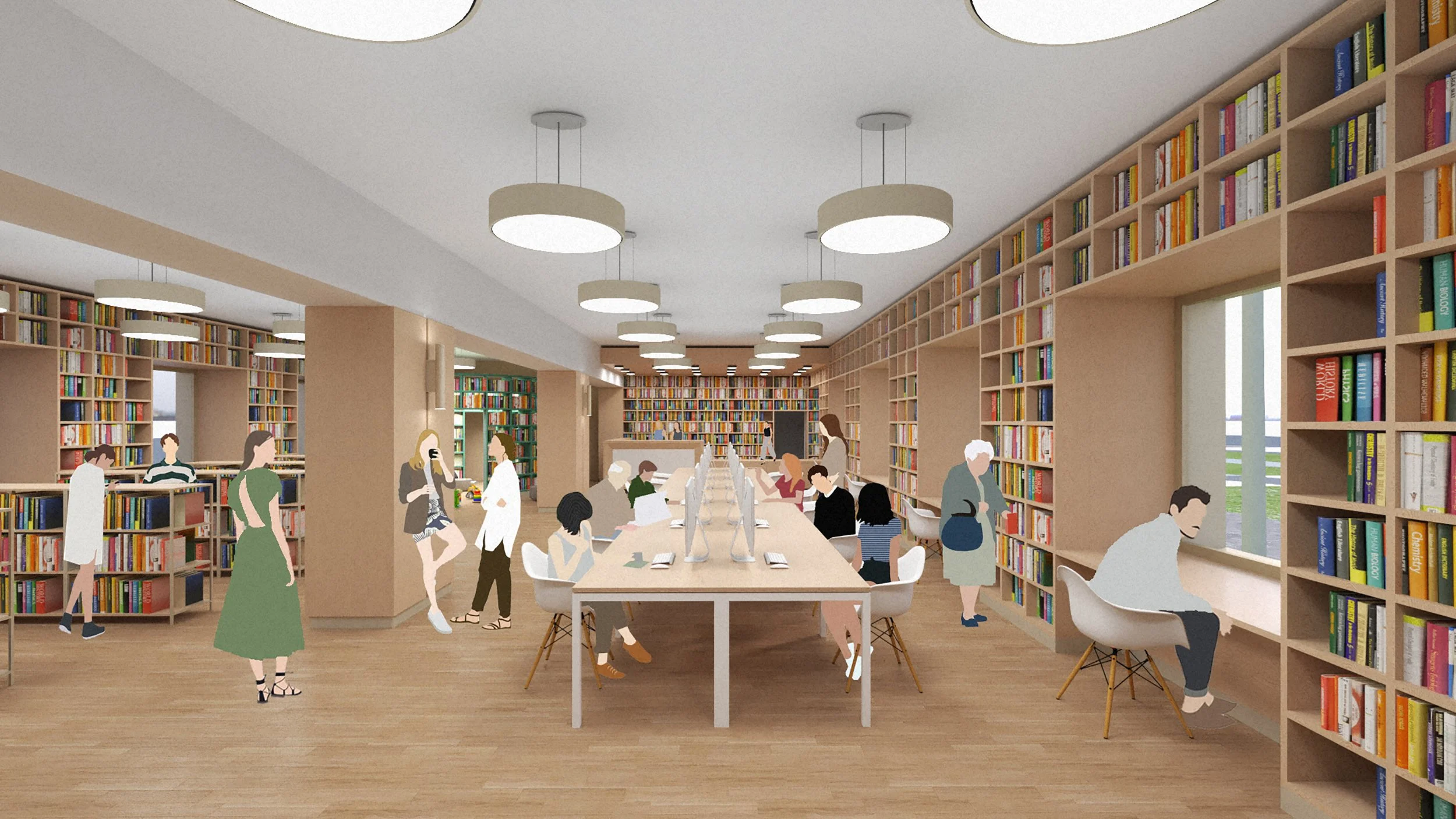 Flexible layouts and modular furniture allow foyers and the library to host exhibitions, lectures, and workshops, extending activity across age groups and throughout the day.